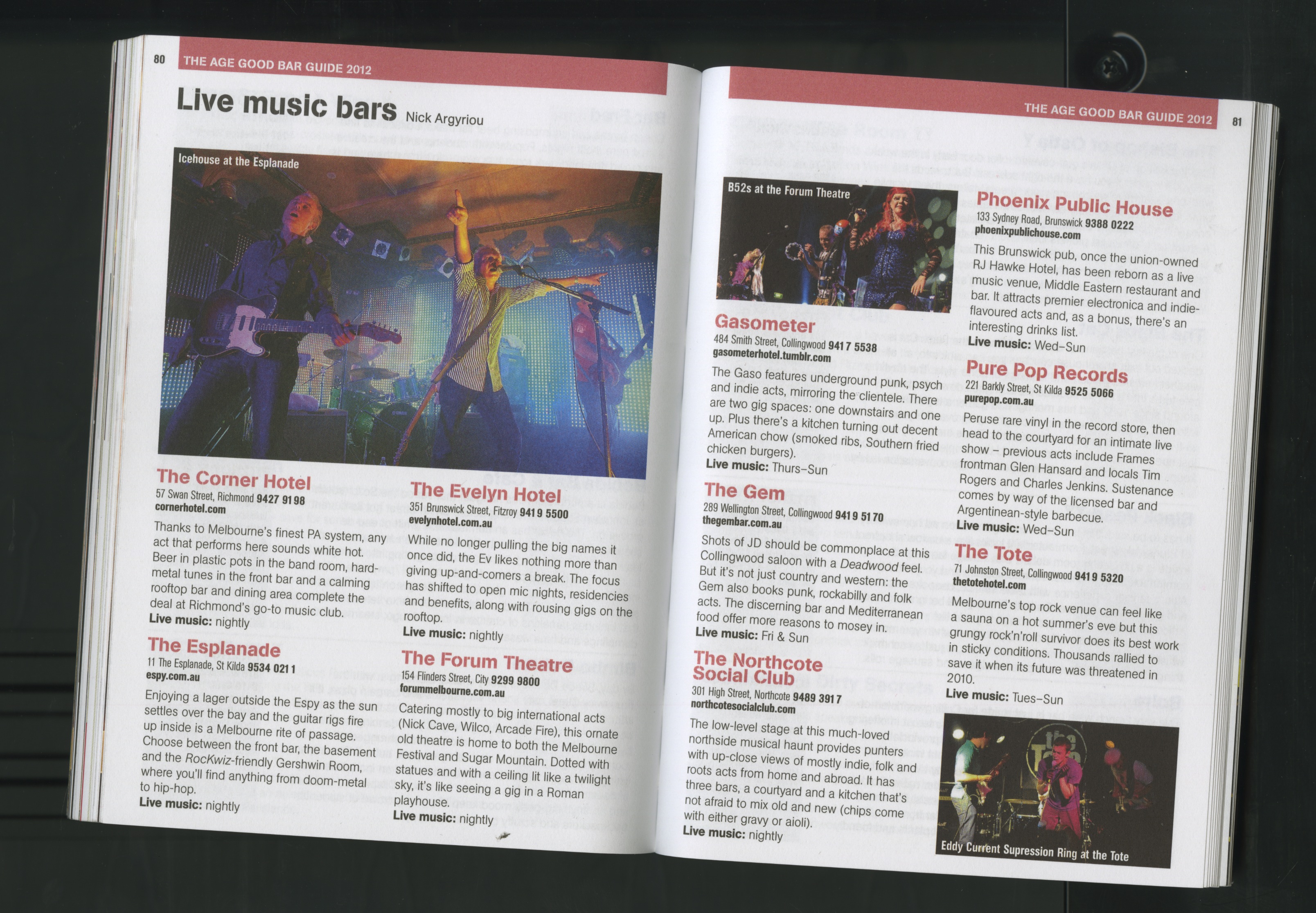 Melbourne is a city renowned for its bar culture and The Age Good Bar Guide aims to get you imbibing in the best of the best. Whether these watering holes are down a lane, in a basement, on a rooftop, up a hidden flight of stairs, in a restaurant or simply in the local corner pub, most are covered within. I penned around 20 odd and this quick-pick music/bar venues piece for this year’s book.